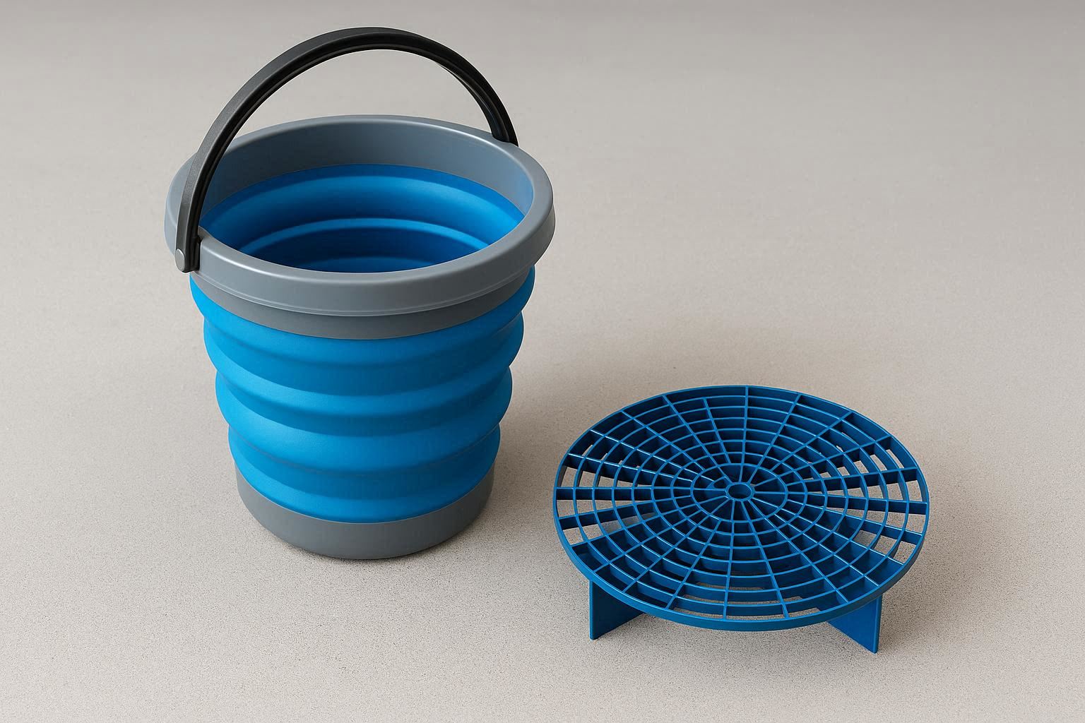 Specifically designed for automotive detailing, this bucket features a rigid, folding base and a detachable, soft-sided upper. It includes a removable “Grit Guard” plate that sits at the bottom, trapping dirt and sand to prevent it from being redeposited onto your wash mitt, thus minimizing scratches. The ergonomic handle provides a comfortable grip. Folds flat to save space in your garage or car trunk. A professional-grade tool for hobbyists and car enthusiasts.